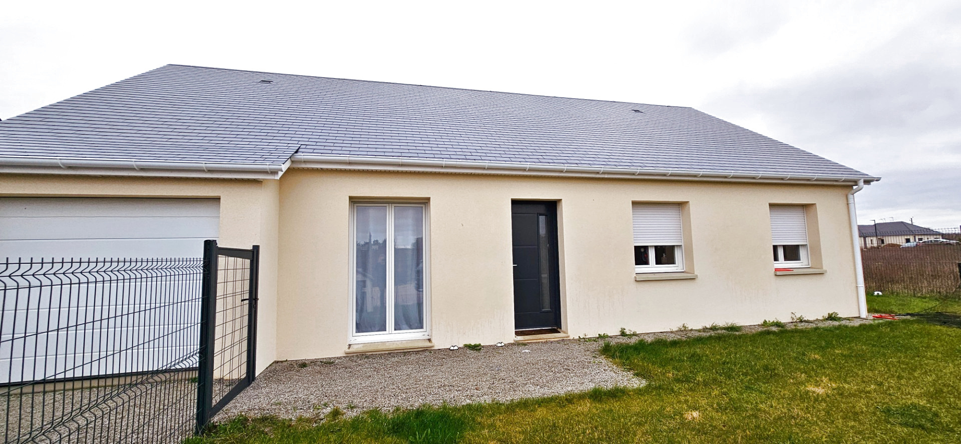 À seulement 5 minutes d’Évreux dans un village avec toutes les commodités Découvrez ce pavillon F5 d’environ 90 m² entièrement de plain-pied et accessible PMR. Implantée sur un terrain clos et arboré de près de 420 m² cette maison contemporaine offre un bel espace de vie lumineux d’environ 40 m² avec séjour-salon et cuisine ouverte aménagée et équipée donnant sur une terrasse exposée sud-ouest. Côté nuit vous disposerez de trois chambres avec dressings d’une salle de douche avec double vasque et d’un WC indépendant. Un cellier et un garage avec porte motorisée complètent l’ensemble. Prestations de qualité : pompe à chaleur réversible fenêtres PVC double vitrage et volets roulants électriques. Un bien alliant confort fonctionnalité et modernité — à visiter sans tarder ! Les informations sur les risques auxquels ce bien est exposé sont disponibles sur le site Géorisques